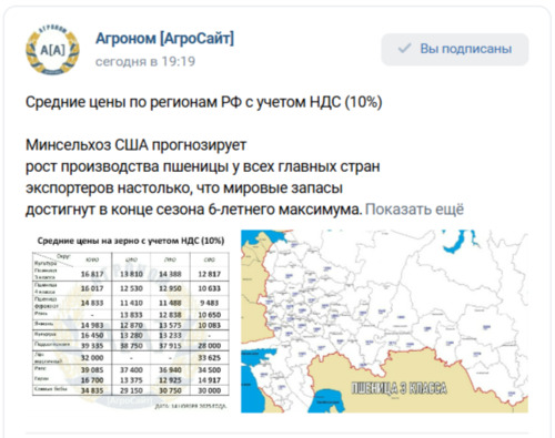 Еще не подписан? Аналитика сбора зерна в РФ В этом году урожай зерновых, по консенсус-прогнозу Центра ценовых индексов (ЦЦИ), ожидается на уровне 137,1 млн т, из них 88,2 млн т придется на пшеницу. В августе аналитики оценивали сбор ниже — 132,4 млн т зерна и 85,8 млн т пшеницы. Как сообщает «Интерфакс» со ссылкой на ЦЦИ, первоначальный «недобор» на Юге, ставший причиной более пессимистичных августовских оценок, был более чем компенсирован хорошими результатами в Поволжье и Центральной России. Одновременно ухудшились прогнозы на следующий год: ожидаемый урожай зерна снижен до 135,3 млн т против прежних 137,8 млн т, по пшенице — до 85,9 млн т против 89 млн т. Экспорт пшеницы в сезоне 2025/26 оценивается в 43 млн т, в 2026/27-м — в 51,1 млн т. Консенсус-прогноз по сбору подсолнечника в текущем году скорректирован вниз — до 17,4 млн т с 18,3 млн т. По другим масличным в этом сезоне по-прежнему ожидаются рекордные объемы, однако по рапсу и сое на следующий год прогнозируется снижение. На 2024 год оценка урожая сои повышена с 8 млн т до 9,1 млн т, рапса — с 5,3 млн т до 5,6 млн т. На 2026 год прогнозируется сбор подсолнечника на уровне 17,3 млн т, сои — 7,8 млн т, рапса — 5 млн т. Производство подсолнечного масла ЦЦИ оценивает в этом году в 7,6 млн т (ранее — 7,8 млн т), в 2026-м — в 7,7 млн т, экспорт — 5,1 и 5,2 млн т соответственно. Все приведенные оценки даны без учета новых регионов. С их включением прогноз по урожаю зерна на текущий год повышается до 138,2 млн т (против 135,5 млн т в предыдущем прогнозе), в том числе по пшенице — до 90,6 млн т (ранее 88,6 млн т). Консенсус-прогноз по подсолнечнику с учетом новых территорий — 18,3 млн т (против 19,8 млн т ранее), по рапсу — 5,7 млн т (5,3 млн т). Аналитика сбора зерна в мире После месячного перерыва из‑за шатдауна USDA опубликовал ноябрьский прогноз, который обвалил рынки пшеницы и кукурузы. Баланс по пшенице в текущем сезоне оказался крайне слабым как с фундаментальной, так и с оперативной точки зрения: ожидается рост запасов и индекса запасов к потреблению. По кукурузе картина схожая, но выражена мягче. Ключевой фактор — пересмотр в сторону повышения урожая у всех крупных экспортеров пшеницы, местами весьма заметный. Мировой урожай пшеницы (без учета Китая) в 2025 году, по оценке USDA, достигнет рекордных 688,89 млн т (в сентябре — 676,2 млн т), что на 4,3% выше прошлогоднего уровня в 660,7 млн т. Потребление также обновит максимум и составит 670,9 млн т (в сентябре — 666,56 млн т), прибавив 1,64% к прошлому сезону (660,06 млн т. Конечные запасы вырастут до 146,65 млн т — это максимум за шесть лет (в сентябре — 139,28 млн т) и на 9,7% выше прошлогодних 133,66 млн т. Индекс запасов к потреблению (stock-to-use) увеличится до 21,9% против 20,2% в прошлом сезоне (сентябрьская оценка — 20,9%). Одновременно USDA снова понизил прогноз среднесезонной внутренней цены на пшеницу в США на 10 центов — до 5,00 $/бушель по сравнению с сентябрем. По всем ключевым производителям с сентября зафиксирован существенный рост оценок урожая: в Австралии — до 36 млн т (+1,5), Аргентине — до 22 млн т (+2,5), Канаде — до 37 млн т (+1), России — до 86,5 млн т (+1,5), ЕС — до 142,3 млн т (+2,2), Казахстане — до 18,9 млн т (+2,9), США — до 54,01 млн т (+1,56). При этом по экспорту пшеницы прогноз для России снижен до 44 млн т (–1), тогда как для других игроков ожидается рост: Австралия — до 26 млн т (+1), Аргентина — до 14 млн т (+1), ЕС — до 33 млн т (+0,5), Казахстан — до 9 млн т (+1).